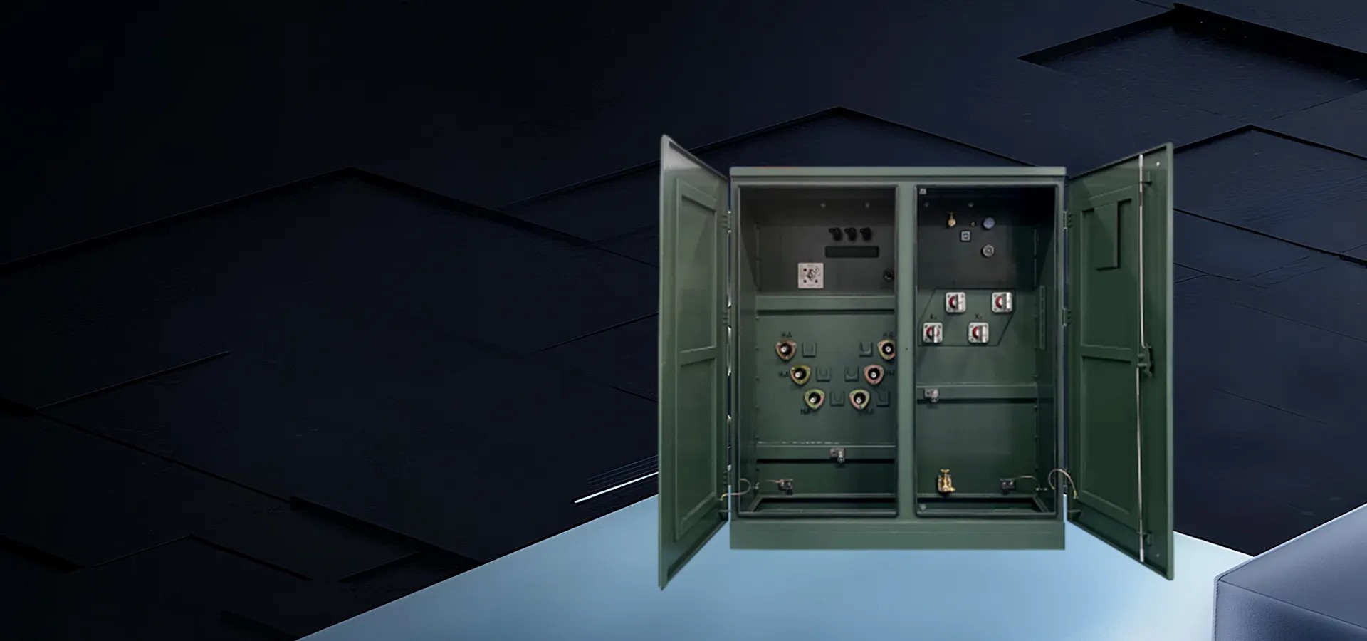 Padmount transformers are used with underground electric power distribution lines at service drops to step down the primary voltage on the line to the lower secondary voltage supplied to utility customers. A single transformer may serve one large building or many homes.